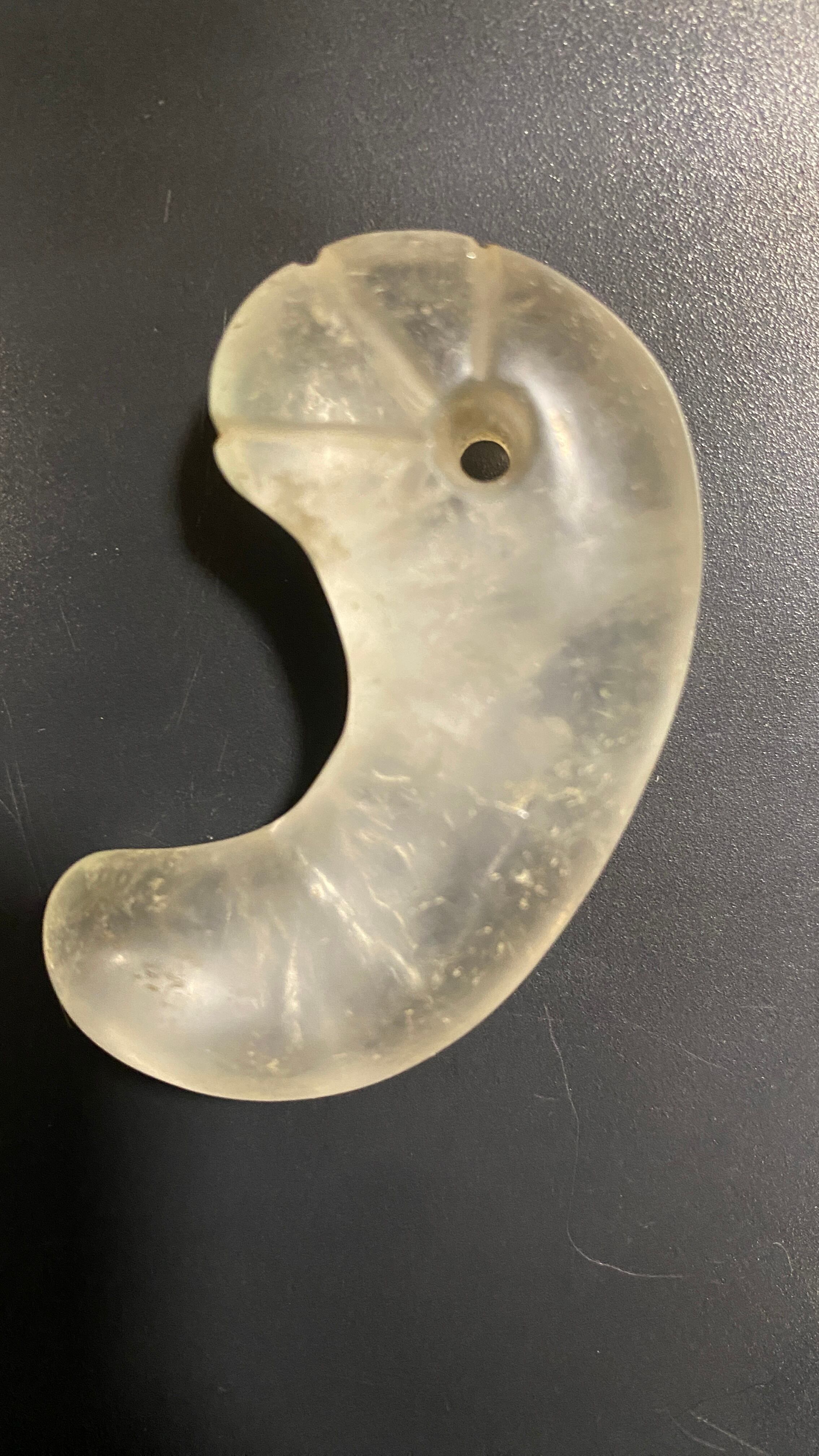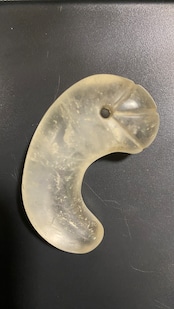 通常の勾玉と異なり、丁字形の彫り込み加工が施されており、特別な用途や地位を持つ人物のために作られたと想像されます。